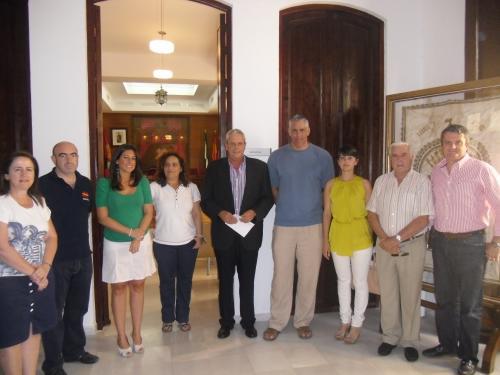 El alcalde de Vera, José Carmelo Jorge Blanco, junto al concejal de Deportes, Juan de la Cruz Belmonte Mena, la diputada provincial del área, Ángeles Martínez, el Presidente de Honor del CB Almería, Juan Esteban Navajas, y el mítico ex jugador de baloncesto, Joe Arlauckas, fueron los encargados ayer de presentar de forma oficial en el Salón de Plenos del Ayuntamiento veratense el Campus CB Almería, organizado por el histórico club, en colaboración con la administración local de Vera y la Diputación Provincial, y con el patrocinio de Deportes Blanes, Hotel México, Parque Acuático Vera, Puleva y Ecocítricos del Andarax.