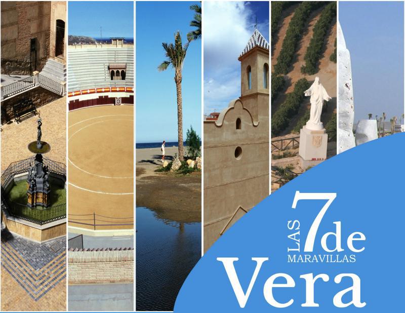 Las 7 maravillas que se pueden encontrar en el libro informativo que ya está disponible en la localidad son: La Plaza de Toros, una de las piezas arquitectónicas con más antigüedad y solera del patrimonio municipal, además de ser la plaza más antigua de la provincia de Almería; el Mirador del Espíritu Santo, emplazamiento de la antigua ciudad hispano-musulmana llamada Bayra, donde se ubica la imagen del Sagrado Corazón de Jesús desde 1949 y ahora también un Centro de Interpretación; la Iglesia Parroquial, levantada durante la primera mitad del siglo XVI; el Convento de la Victoria que fue habitado por los Padres Mínimos desde comienzos del siglo XVII hasta el año 1823; la Semana Santa de Vera, entre otras, cosas por su tradicional ‘Subida de Jesús’ y el ‘Pregón del Judío; la Glorieta, área verde, de ocio y recreo construida como consecuencia del desarrollo económico y demográfico de la segunda mitad del siglo XIX, y El Playazo de Vera, la playa más popular de la localidad, playa abierta y de arena fina con muy buena calidad.
