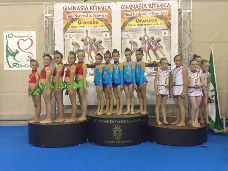 Y la alegría para las de Vera continuaba en la jornada de domingo porque dos de sus tres conjuntos de nivel A también consiguieron ganar en sus categorías; tanto el conjunto Alevín A con 5 pelotas y compuesto por las gimnastas Paqui Gerez, Elvira Ibáñez, Belén Rodríguez, Estela Wellings y Connie Aguilar, como el conjunto Infantil A con 5 aros, formado por Pepa de Haro, Pilar Marín, Aurora López, Laura Valencia y Noelia Navarro, se proclamaron primeros clasificados con 8.067 y 8.100 puntos respectivamente.