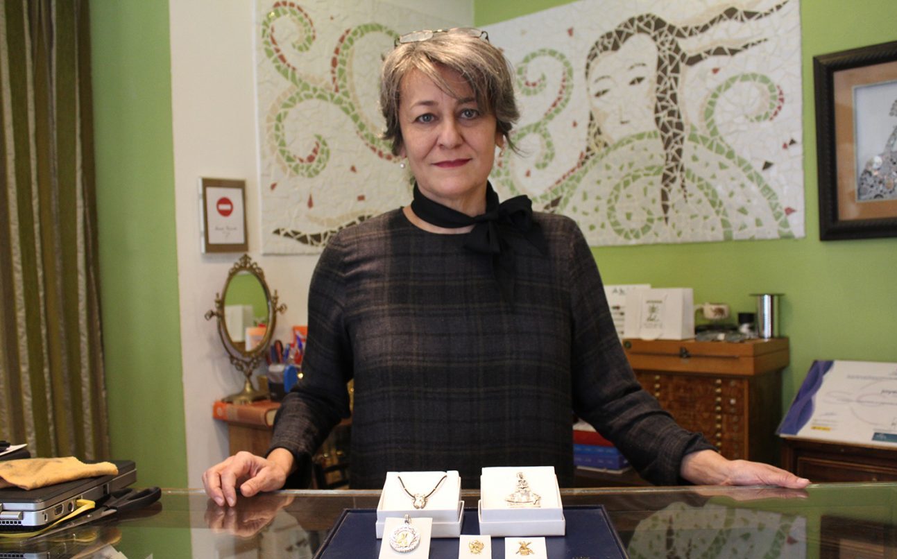 Solo hace falta echar un vistazo a las vitrinas de su joyería para darse cuenta de que Vera es una de las mayores inspiraciones para Francisca Soler. Ha elaborado pines con el escudo de Vera, colgantes con jarras de cinco picos, o pequeñas réplicas en metal de las imágenes de las diferentes hermandades veratenses —la Virgen de las Angustias y Jesús Nazareno —.