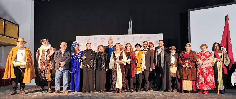 Un grupo de vecinos caracterizados con trajes de la época,  portaron la bandera de Vera en el escenario del Teatro Regio en unos actos que comenzaron a las 22:30 con los diferentes discursos y actuaciones, donde intervinieron el alcalde de Vera, José Carmelo Jorge Blanco y la concejal de Cultura, María Manuela Caparrós, quien indicó que “un año más, los componentes del grupo NO ERES DE VERA SI, en colaboración con el Ayuntamiento, hemos organizado este emotivo homenaje a los fallecidos en el terremoto que asoló la antigua ciudad medieval de Vera el 9 de noviembre de 1518. Un terremoto que ocasionó la muerte de al menos 150 personas y dejó en estado ruinoso prácticamente todas las viviendas, murallas y la Alcazaba que se levantaban aquí en el Cerro del Espíritu Santo. 503 años después de aquél fuerte terremoto que sacudió la Bayra medieval sepultando sus restos bajo montañas de lodo y piedras, recordamos a nuestros antepasados. Unos veratenses luchadores y decididos que fueron capaces de reponerse de las adversidades y reconstruir la próspera ciudad de Vera tal y como hoy la conocemos. Sirva este homenaje para su recuerdo, honrar su legado y expresar nuestra más sincera admiración. Los veratenses de hoy, tratamos a través de esta serie de actos  no olvidar, que las nuevas generaciones conozcan su pasado y el valor de sus antepasados. La rica historia de nuestro pueblo que gracias a colectivos y personas tan implicadas como los componentes del grupo NO ERES DE VERA SI se mantienen vivos. En este sentido, desde el Ayuntamiento también queremos poner en valor nuestra historia y nuestro legado, por eso el área de Cultura del Ayuntamiento de Vera está llevando a cabo un importante proyecto de puesta en valor del Cerro del Espíritu Santo con el compromiso de conservar su legado y su patrimonio y el convencimiento de que es necesario desvelar más información sobre la antigua Bayra para su puesta en valor y poder mostrar al mundo como fue nuestra ciudad, como era la vida de nuestros antepasados. Así este año hemos llevado a cabo las primeras y más importantes labores arqueológicas puestas en marcha hasta el momento en el yacimiento del Cerro, con el objetivo de rescatar y recuperar parte de nuestro legado y nuestra historia que se encuentran sepultados a la espera de ser descubiertos para conocer un poco mejor cómo vivían nuestros antepasados. Este es el primer paso para poder convertir el Cerro del Espíritu Santo en un gran parque arqueológico visitable, un recurso turístico y cultural de la localidad”.