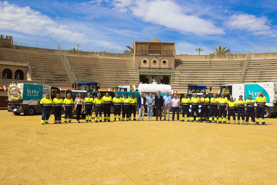 La presentación del servicio, que entró en funcionamiento en el mes de marzo, ha tenido lugar en la Plaza de Toros de la localidad con la presencia de los 22 trabajadores y la máquinaria de última generación destinada a la ejecución de los trabajos: 2 tractores, 2 máquinas limpiaplayas, 2 vehículos eléctricos, 2 vehículos 4×4, 1 camión baldeador, 1 furgón hidrolimpiador, 4 barredoras de viales y otros equipos de apoyo. Se han incorporado además herramientas eléctricas como sopladores, entre otros elementos de limpieza.