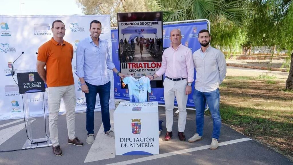 En la presentación del Triatlón Ciudad de Vera ha intervenido el vicepresidente y diputado de Deportes, José Antonio García; el segundo teniente alcalde de Vera, Miguel Ángel Jorge; el concejal de Deportes, Antonio Jesús Soler; y el delegado provincial de la Fatri, José Luis González.