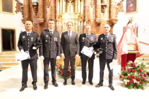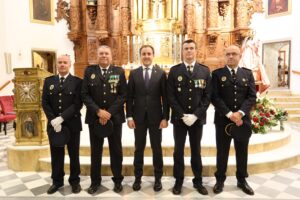 El pasado sábado se celebraron por segundo año consecutivo en Vera los actos conmemorativos de la festividad de los Santos Ángeles Custodios, Patronos de las Policías Locales y Cuerpo Nacional de Policía,  con una misa en la iglesia de Nuestra Señora de la Encarnación de Vera, y el posterior reconocimiento a los agentes de la plantilla de la Policía Local de Vera con más de 25 años en el cuerpo. Un acto que contó con la presencia de diversas autoridades civiles y militares entre los que se encontraban representantes de la Guardia Civil, del cuerpo de Bomberos del Levante, Policías Locales de otros municipios y representantes de todas las Hermandades y Cofradías de la localidad.