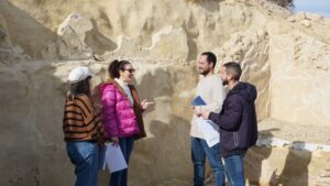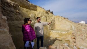 La concejal de Promoción de la Ciudad y Parque Arqueológico BAYRA, Carolina Pérez, y el edil de Cultura, Antonio Soler, han visitado el yacimiento del Cerro del Espíritu Santo junto a responsables del Grupo de Investigación PRINMA de la Universidad de Granada, con el objetivo de planificar la próxima intervención arqueológica que se llevará a cabo la próxima primavera – verano. En este sentido, el director de la excavaciones, Moisés Alonso Valladares, ha manifestado durante la visita que “es importante resaltar que en el yacimiento seguimos trabajando en el proyecto durante todo el año, en esta ocasión, hemos tomado muestras de mortero para realizar análisis mediante técnicas como difracción de rayos X  y análisis por fluorescencia, con el fin de entender y conocer la composición de los muros de hormigón del yacimiento”.