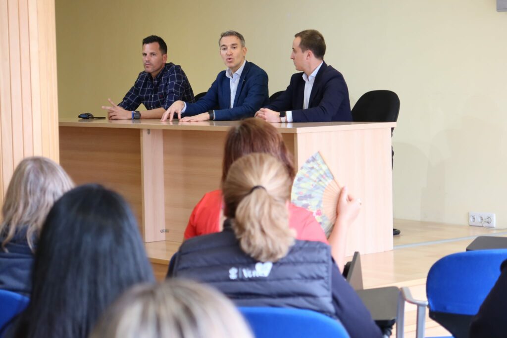 El delegado territorial de Empleo, Empresa y Trabajo Autónomo, Amós García Hueso, y el alcalde de Vera, Alfonso García Ramos, han mantenido un encuentro con los 45 alumnos y alumnas de tres proyectos de Empleo y Formación impulsados por el ayuntamiento y apoyados por la Junta de Andalucía con 1,25 millones de euros.