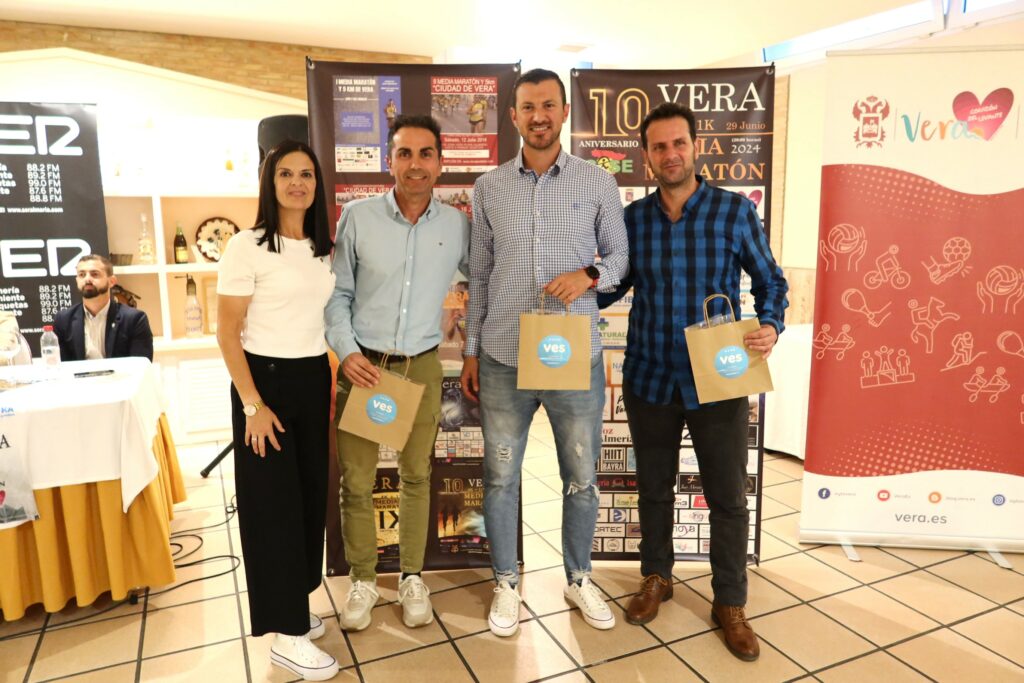 El Ayuntamiento de Vera y el Club Atletismo Sur Este han presentado en Hotel Restaurante Terraza Carmona, la décima edición de la Media Maratón de Vera 2024, en un acto donde han intervenido el alcalde de la localidad, Alfonso García, el concejal de Deportes, Antonio Soler y la diputada provincial, Esther Álvarez junto con la actual presidenta del Club Reme Martínez Serrano, además de los presidentes del Club Atletismo Sur Este que durante estos diez años de la prueba han presidido el club local, alma en la organización del evento junto al Ayuntamiento de Vera.